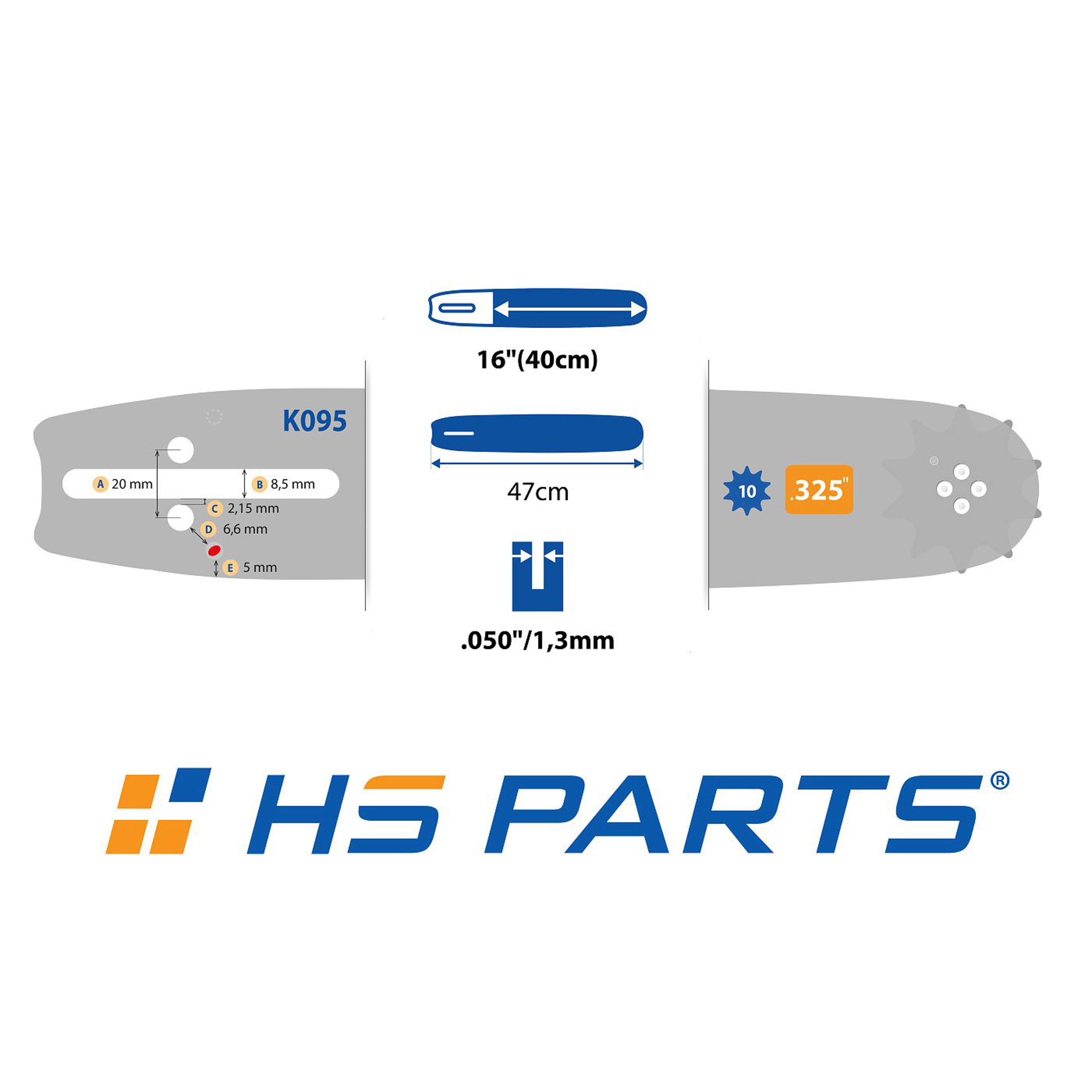 HS PARTS Führungsschiene 16" (40 cm) .325" .050" (1,3 mm) + Sägekette 66 Glieder Vierkantzahn für Husqvarna 36 55 136 154 254 257 262 357 435 445 460 Jonsered 2054 2152 2155 CS2149W Dolmar 109 111 112 116 Oleomac 938 947 952 962 Solo 639 651 665